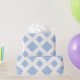A stylish, geometric pattern of large and small light blue diamonds on a white background. The white forms a lattice which separates the baby blue diamond shapes.