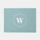 Light blue discreet floral pattern blue monogram doormat
