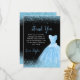 A beautiful light blue themed elegant watercolor dress gown on a black background with faux glitter at the top and bottom of the card.