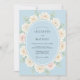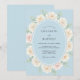 This design features a serene palette of soft powder blue and creamy white. Delicate watercolor roses in shades of ivory and pale blush create a lush arrangement of petals and greenery. The ethereal aesthetic is perfect for a classic spring or summer event, offering a timeless and romantic atmosphere.