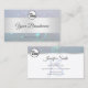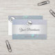 Make a lasting impression with this elegant and quality business card template featuring a shimmery pearl glitter effect with a silver decor border on a light blue background.