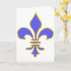 Light blue with gold trim fleur de lis represents a coat of arms or a Christian symbol. Add your own verse or use as a special occasion card.
