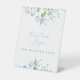 A beautiful light blue watercolor floral table top sign for you to customise for your even - perfect for a wedding or bridal shower.