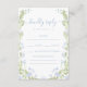 Experience modern sophistication with this watercolor responce RSVP card crafted for a rustic spring or summer wedding. The design features an elegant and delicate light blue flower bloom wreaths, complemented by the inclusion of the bride and groom monogram on the back. Elevate your wedding details with this refined and personalized touch.