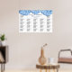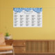 Blue Heaven floral border seating chart poster. Light blue hydrangea flowers hang from the top of 24 x 36 inch paper. Names and wedding date are at the top. Customise each block of text with names of guests and seat by table number or alphabetically.