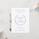 Experience sophistication with this refined and contemporary rustic Save the Date invitation. Enhanced by a delicate wreath of light blue watercolor flower blooms, this elegant design offers further personalisation by featuring a couple's photo on the back. Immerse yourself in the timeless charm of this unique and customisable invitation.