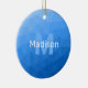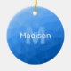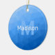 Light blue ombre geometric mesh pattern Monogram Ceramic Christmas tree Ornament. Monogram Personalise with your custom initial and name. Triangle geometric mesh with light dark blue ombre gradient modern design.