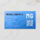 Light blue geometric mesh pattern QR code Monogram Business Card