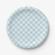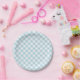 Light Blue Gingham Plaid Pattern Paper Plate