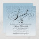 Light Blue Glam Glitter Sweet 16 Square Invitation