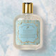 A label for soap and/or cosmetics with a light blue damask and gold foil design. This label has lots of space for your ingredients, product description, and other information. Upload your own logo or use ours.