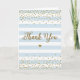 Foldable thank you card with white and blue stripes and faux confetti glitter. Complete your theme with matching invitation, signs, decorations and more from my Light Blue and Gold Collection.
