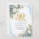 Light blue gold luxe border greenery 90th birthday invitation