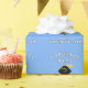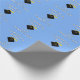 Creative graduation giftwrap for Class of '25 grad featuring black graduation cap with gold tassel on light-blue background. To personalise edit text to add his or her name.