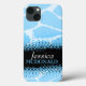 Bright teen style animal patterned case in black and blue hues. Personalise this item with your full name. This example currently reads: Jessica Mcdonald. This original pattern by Sarah Trett, is based on the patterning found on a giraffe with a halftone moiré dot gain pattern overlay.