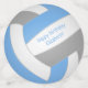 This volleyball birthday party confetti for girls or boys features the image of a volleyball with light blue, grey and white panels on the front and a simple white volleyball or the child's age on the back of each confetti piece with a light blue background - by katz_d_zynes