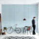 This custom wallpaper features a stylish geometric design with a white and pale or light blue coloured harlequin pattern. The seamless harlequin design is tiled across the wallpaper.