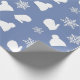 Slate Blue Holiday Mittens and Christmas Hats and Snowflakes Wrapping Paper