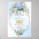 Celebrate 80 wonderful years with this watercolor hydrangea welcome sign. Dusty blue and gold florals create a soft, elegant greeting perfect for an 80th birthday party. Boho eucalyptus accents and pastel hues bring timeless beauty to your celebration.