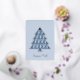 The iconic “Noel” Christmas tree in blue.. The tree is created from shapes and angles, with a trace of foil in key places. The back has attractive text with a Christmas blessing, and your photo. Send friends and family a centerpiece of cards!