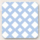 A stylish, geometric pattern featuring a lattice of light blue. The baby blue cross-hatching separates large and small white diamonds.