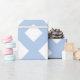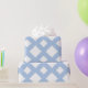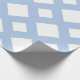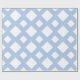 A stylish, geometric pattern featuring a lattice of light blue. The baby blue cross-hatching separates large and small white diamonds.