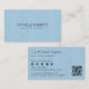 Simple light blue linen texture with black customisable typography. Social media icons and a QR Code.