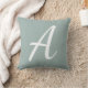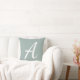 Simple cute monogram pillow in sea foam blue with a large modern script letter.