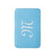 Light blue monogram quatrefoil pattern bath mat