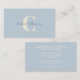 This elegant business card design features a soft pastel blue background with a large cream-coloured monogram at the centre, overlaid with a delicate handwritten name. Perfect for professionals, creatives, or small business owners seeking a minimal yet personalised style. A timeless and approachable choice for everyday networking.