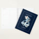 Modern watercolors light-blue painted wood nautical boat anchor with white and navy-blue flowers.