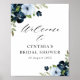 light blue navy floral bridal shower welcome sign