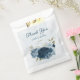 Beautiful romantic favour bag featuring navy blue and light dusty blue flowers and some pretty leaves .