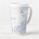Enjoy your latte or morning coffee with a Light Blue Peacock Personalised Latte Mug. Mug design features a vibrant light blue peacock, a soft white leaf vine against a light grey grunge background with an area to personalise with your name. Additional gift items available with this design as well as a variety of colours.