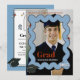 Make waves with your graduation announcement! This fun and stylish invitation boasts a trendy light blue wavy squiggle design that's sure to catch the eye. Proudly display your grad's photo framed by a classic graduation cap, and customise it with their name and all the exciting party information. It's an energetic and unique way to invite friends and family to celebrate this major milestone!