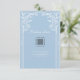 This wedding Enclosure Card exudes elegance and sophistication. The soft blue background provides a fresh, serene canvas that perfectly complements the intricate white floral patterns around the edges. The program card is written in a modern, bold font, emphasizing the importance of the event. The rest of the text is in a classic, graceful script, creating a harmonious contrast. Overall, this design beautifully blends modern typography with timeless elegance, making it ideal for any romantic wedding celebration.