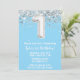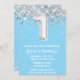Light Blue Silver 1st Birthday Party Invitation