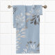 Light blue coloured background decorated with faux silver foliage. Personalise and add your monogram letter.
