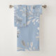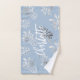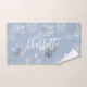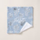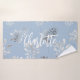 Light blue coloured background decorated with faux silver foliage. Personalise and add your name. Large white hand lettered style script.