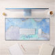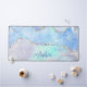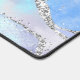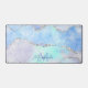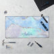 Personalise this monogrammed chic stylish desk mat to add glam and sparkle to your workspace. The design features pastel aqua blue and light purple agate marble with silver glitter highlights and sparkle throughout.