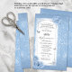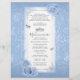 Create your own enchanting fairytale inspired DIY scroll invitations in soft shades of light blue and silver using this easy, editable template. Simply follow the dotted lines to cut and roll up these elegant quinceanera invitations, whether with or without a dowel rod and ribbon, for a touch of mediaeval charm. Original artwork by Raphaela Wilson features delicate watercolor baby blue roses, sparkling metallic silver confetti butterflies, a vintage queen's crown / princess tiara, and a fancy filigree border with a theme of elegant dresses and gowns.