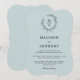 A tasteful and classic choice in wedding invitations, this design conveys a simple elegance in its text layout and bracket shape style. A simple open laurel wreath of sketched leaves surrounds the monogram initial of the bride and groom on a light blue background. The elegant yet simple text template is ready to personalise with your wedding details. This invitation is a versatile choice for weddings at any season of the year and for any wedding venue, whether a solemn religious ceremony or a secular type affair at a banquet hall, winery, museum, restaurant, private club, or a rustic wedding outside in nature. This invitation is available in a variety of shape styles (shown her in the notched shape) as well as many different colours, paper types and weights.