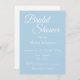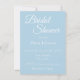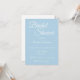Simple style, bridal shower invitation that features a trendy, light blue colour background along with the future bride's name and party event time and location, contact, etc., printed in white, stylised lettering. Personalise your invitation by replacing text with your own bridal shower information. Select your invitation paper style and quantity.