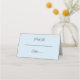 Simple style, light blue colour place cards for your wedding planning that feature the bride and groom's initials in black, stylised script along with space for guest name and table number. Customise your place card by editing and replacing bride and groom's initials. Select your place card paper style.