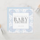 Light Blue Baby Shower Invitation. Square. Grey text.