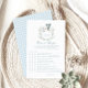 Add a touch of elegance to your baby boy shower with our sophisticated "Over or under" game. Featuring a charming stork carrying baby boy in a cute crest and baby blue gingham pattern at the back, this delightful activity is perfect for entertaining your guests and creating lasting memories. Ideal for adding fun and excitement to your special celebration!