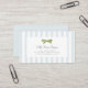 Soft Light Blue Stripe with Bow Delicate Business Card. Option to change the light blue background colour. Pale blue tone. Green bow.