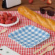 Light blue and white gingham pattern is made of baby blue, white, and light blue squares in a bold buffalo plaid.