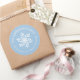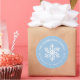 Affordable custom printed round return address stickers personalised with your family name and return address. This simple modern holiday design features a white snowflake on a light blue background. Use the design tools to choose any background colour, edit text fonts and colours or upload your own photos to design your own unique holiday return address labels, envelope seals or gift tag stickers.