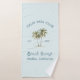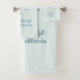 Add a tropical touch to your beach house with this coastal bath towel set! Featuring blue palm trees, wood texture, and a custom name with year established.